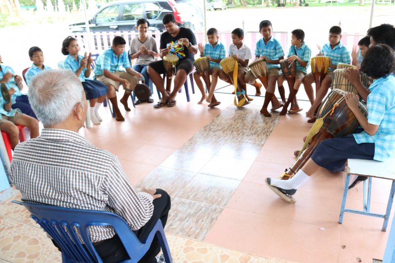 “เป้าหมายคืออยากให้น้องๆ เรียนรู้ถึงจังหวะลูกเล่นใหม่ๆ จากคนที่ได้ชื่อว่าเป็นศิลปินแห่งชาติ ซึ่งน้องๆ ก็ได้เรียนรู้ถึงเทคนิคแพรวพราวมากขึ้น ได้ความสนุกสนานด้วย เพิ่มความมั่นใจให้เขากลับไปด้วย พอกลับมาฝึกซ้อมกันที่โรงเรียนทำให้แต่ละคนเริ่มมีพลังมากขึ้น เรากลับมาปรึกษากันว่า จังหวะที่ปราชญ์สอนจะเอามาปรับใช้ได้อย่างไร เพราะเป็นจังหวะยากและคนในกลุ่มไม่มีใครรู้มาก่อน และเราควรเอาจังหวะนี้มาลองเล่นกันในกลุ่มบ้าง” โย บอกการเรียนรู้นอกพื้นที่