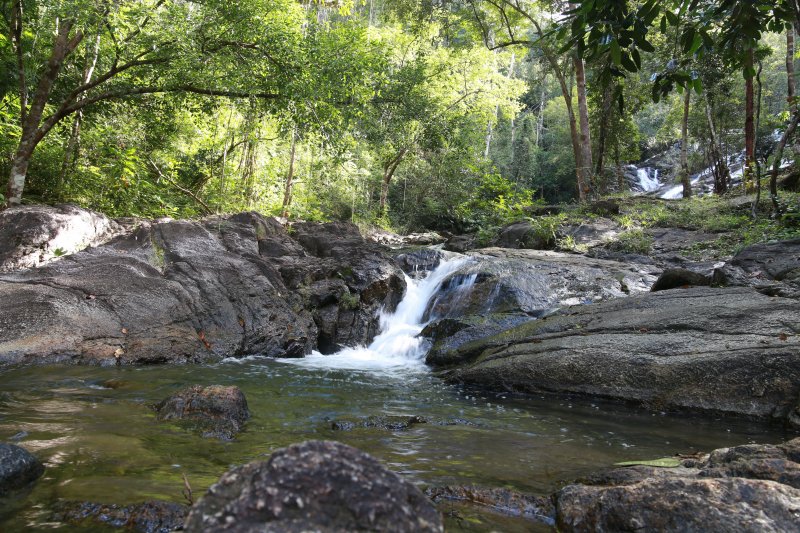 “คนในหมู่บ้านบอกว่าแต่ก่อนนั้นต้นไม้ในพื้นที่ค่อนข้างสมบูรณ์ มีคนมาบุกรุกตัดไม้บ้าง แต่คนเฒ่าคนแก่ก็ช่วยกันปกป้องรักษา เพราะรู้ว่าการตัดไม้จะทำลายระบบนิเวศและต้นน้ำได้ ต้นไม้บริเวณน้ำตกส่วนใหญ่มีขนาดใหญ่ ส่วนชื่อต้นไม้บางต้นนั้นไม่เคยได้ยินมาก่อน เช่น ต้นไม้แดง ต้นขานาง ต้นเต้า ด้านล่างลงไปก็จะมีต้นเขารัก ซึ่งเป็นชื่อที่คนแก่เรียกกัน บางต้นก็ชวนเขามาดูเลยว่าเป็นต้นอะไร ส่วนสัตว์เห็นแต่ลิง บางทีลงมาเป็น 100 ตัว แต่นานๆ ทีจะมีลงมา”