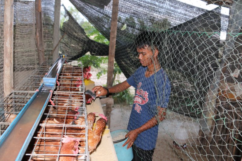 “ผมใช้วิธีแบ่งเวรให้น้องๆ มาช่วยกันดูแลไก่ ใครสะดวกตอนไหนก็เลือกลงเวลานั้น วันไหนไม่มีใครว่างก็ใช้วิธีขอร้องบอกว่าใครขี่รถผ่านทางนั้นให้แวะไปดู โดยมีสมุดบันทึกการให้อาหารไก่ผูกไว้ที่เล้าไก่ เพื่อให้น้องที่แวะเข้ามารู้ว่ามีคนให้อาหารไก่หรือยัง ถ้ายังไม่ให้ก็ให้ ใครให้แล้วก็ขีดลงบันทึกจะได้ไม่ให้ซ้ำกัน น้องคนไหนไม่มา ผมก็ไม่ตำหนิ ใช้วิธีพูดเตือนสติว่า ขนาดเรายังหิวข้าวเลย ไก่ก็หิวเหมือนคนนั่นแหละ พอน้องฟังก็ยิ้มๆ แสดงเขาเข้าใจแล้ว”