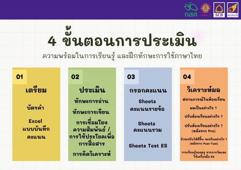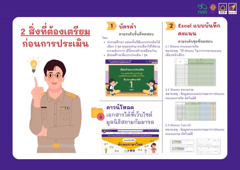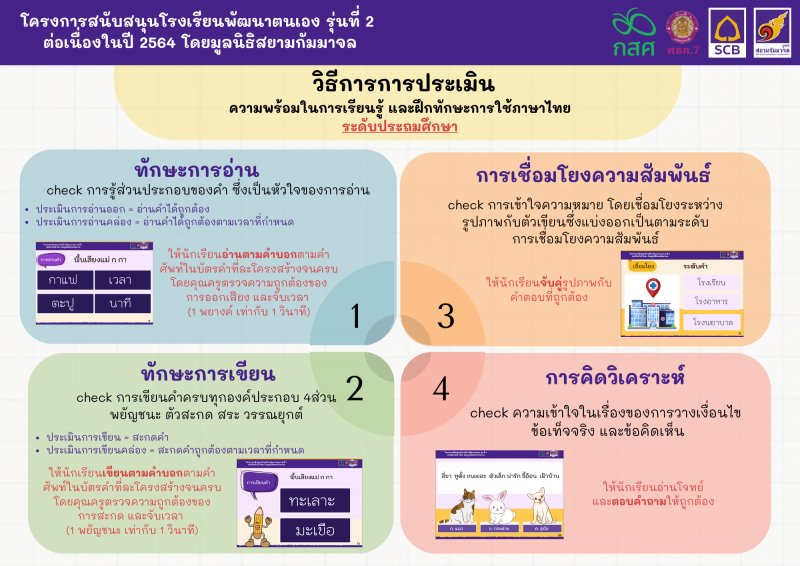 มูลนิธิสยามกัมมาจลได้กำหนดให้มีการออกแบบ แบบประเมินความพร้อมในการเรียนรู้และฝึกทักษะการใช้ภาษาไทย มุ่งพัฒนาสมรรถนะการสื่อสาร เพื่อให้ครูสามารถนำเครื่องมือประเมินความพร้อม วัดทักษะของนักเรียนในชั้น ป.1 - ม.3 และจัดกระบวนการเรียนรู้ให้สอดคล้องกับนักเรียนในแต่ละระดับชั้น