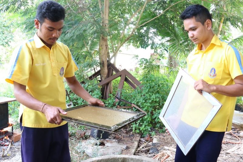 บีมเล่าว่า ช่วงแรกทีมงานทดลองทำกระดาษจากชานอ้อยด้วยตนเอง โดยแบ่งบทบาทกันตามขั้นตอนการผลิตกระดาษคือ หาชานอ้อย สับ ต้ม ปั่น ร่อน ส่วนตำแหน่งในโครงการมีตูมเป็นประธาน เสกเป็นเลขา ต้นเป็นรองประธาน บีมเป็นผู้ช่วย ณัฐรับผิดชอบดูแลเรื่องบัญชีการเงิน รวมทั้งมีการออกแบบและทำอุปกรณ์เองทั้งหมด โดยเฉพาะเฟรมร่อนที่ใช้สำหรับกรองเยื่อชานอ้อยที่ปั่นแล้วเพื่อขึ้นรูปเป็นกระดาษ แต่เมื่อทดลองใช้งานก็พบว่ายังใช้ได้ไม่ดีนัก เพราะตระแกรงลวดหย่อน เนื้อกระดาษจึงไม่เรียบเสมอกันทั้งแผ่น จึงแก้ปัญหาด้วยการสั่งทำเฟรมใหม่จากร้านอลูมิเนียม