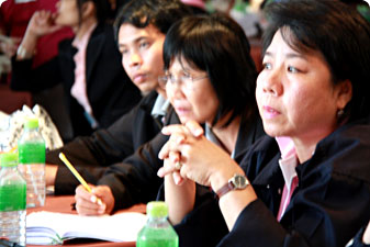 ส่วนสาระวิชาภาษาไทย คุณครูวณิชชา ร่ำร้อง จากโรงเรียนมกุฎเมืองราชวิทยาลัย จ.ระยอง กล่าวว่า จากการที่ได้แลกเปลี่ยนเรียนรู้ระหว่างเพื่อนครูด้วยกัน ทำให้ตนได้รับการเติมเต็มเรื่องแนวปรัชญาเศรษฐกิจพอเพียงลึกซึ้งมากขึ้น แต่เดิมคิดว่าแนวปรัชญาเศรษฐกิจพอเพียงเป็นเรื่องเศรษฐศาสตร์ เป็นหน้าที่ของกลุ่มสาระวิชาสังคม แต่เมื่อได้มาฟังครูผู้รู้ผู้มีประสบการณ์แล้วความคิดดังกล่าวก็เปลี่ยนไป พบว่า ในทุกๆ กิจกรรมที่ครูภาษาไทยสอน ทั้งทักษะการฟัง การพูด การอ่าน และการเขียน สามารถบูรณาการความพอเพียงเข้าไปได้ทั้งสิ้น ขึ้นอยู่กับวิธีการเชื่อมโยงเรื่องเศรษฐกิจพอเพียงให้เห็นเป็นรูปธรรม เช่น โครงการสร้างนิสัยรักการอ่านด้วยนิทานพื้นบ้าน สามารถให้นักเรียนไปเก็บข้อมูลจากครูภูมิปัญญามาเล่าให้เพื่อนๆ ฟัง ก็จะทำให้นักเรียนได้เรียนรู้เรื่องราวในท้องถิ่นของตนเอง