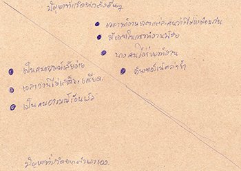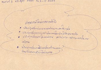 “ปัญหาจากตนเอง :- อารมณ์เสียง่าย เวลางานไม่เสร็จจะเครียด อารมณ์ร้อนเร็ว / ปัญหาจากผู้อื่น :- เวลาทำงานเวลาแต่ละคนว่างไม่เหมือนกัน มีเวลาในการทำงานน้อย บางคนไม่ช่วยทำงาน อินเทอร์เน็ตล่าช้า"
