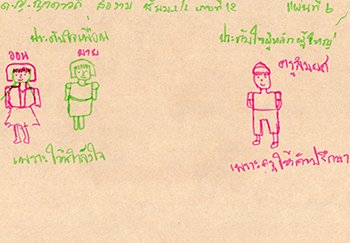 “เพื่อน :- ออนและมาย ให้กำลังใจ / ผู้หลักผู้ใหญ่ :- ครูสมยศ ให้คำปรึกษา"