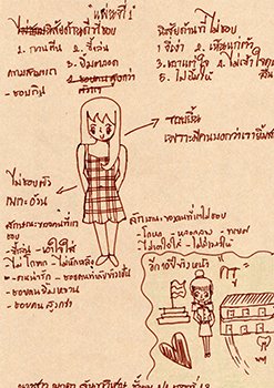 "สิ่งที่ชอบบนใบหน้าและบนร่างกาย :- ชอบรอยยิ้มเพราะมีคนบอกว่าเรายิ้มสวย / สิ่งที่ไม่ชอบบนใบหน้าและร่างกาย :- ไม่ชอบตัวเพราะอ้วน / นิสัยด้านบวก :- ขี้เล่น ยิ้มตลอด / นิสัยด้านลบ :- งี่เง่า เห็นแก่ตัว เอาแต่ใจ ไม่เข้าใจคนอื่น ไม่ยิ้มให้ / ลักษณะของบุคคลที่ชอบ :- ขี้เล่น เอาใจใส่ ไม่โกหก ไม่หักหลัง น่ารัก ทำกับข้าวเป็น ยิ้มหวาน สูงกว่า / ลักษณะของบุคคลที่ไม่ชอบ :- โกหก หลอกลวง ทรยศ ไม่เอาใจใส่ ไม่มีเวลาให้ / อนาคตอีก 10 ปีข้างหน้า :- ครู"
