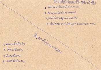 “ปัญหาจากตนเอง :- เป็นคนขี้โมโหง่าย ไม่ค่อยตั้งใจเรียน เป็นคนเบื่อง่าย ชอบมาเข้าเรียนสาย / ปัญหาจากผู้อื่น :- เพื่อนไม่มาช่วยรดน้ำต้นมะละกอ ครูเอาพันธุ์มะละกอมาช้า เพื่อนไม่ช่วยปลูกต้นมะละกอ เพื่อนไม่ค่อยเอาใจใส่ดูแลรักษาต้นมะละกอ"