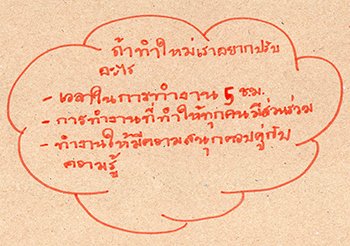 "เวลาในการทำงาน 5 ชั่วโมง การทำงานที่ทำให้ทุกคนมีส่วนร่วม ทำงานให้มีความสนุกควบคู่กับความรู้"