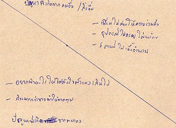 “ปัญหาจากตนเอง :- อยากทำอะไรให้ได้ดั่งใจตัวเองเกินไป กินมากกว่าขายทำให้ขาดทุน / ปัญหาจากผู้อื่น :- เพื่อนไม่ค่อยให้ความร่วมมือ อุปกรณ์ไม่ครบไม่พร้อม สถานที่ไม่เอื้ออำนวย"