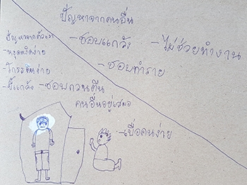 "ปัญหาจากตัวเรา :- หงุดหงิดง่าย โกรธคนง่าย ขี้แกล้ง ชอบกวนคนอื่นอยู่เสมอ เบื่อคนง่าย / ปัญหาจากคนอื่น :- ชอบแกล้ง ไม่ช่วยทำงาน ชอบทำร้าย"