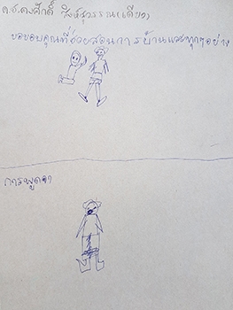 "ขอบคุณ คุณครู เพื่อน พี่ๆ พ่อ แม่ / ให้อภัย เพื่อนทุกๆ คน พี่ๆ น้องๆ"