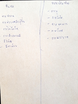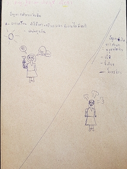 "ปัญหาจากสิ่งอื่น :- อากาศร้อน ทำให้เราเครียดและไม่มีสมาธิในการทำงาน เล่นกัน คุยกัน / ปัญหาจากตัวเรา :- หงุดหงิดง่าย เบื่อ ขี้เกียจ โกรธง่าย"