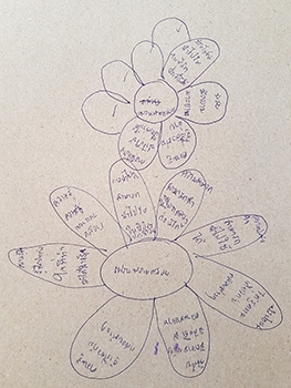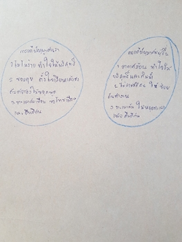 "ปัญหาจากตัวเรา :- โกรธและโมโหง่าย / ปัญหาจากภายนอก :- ไม่สามัคคีกัน ชอบคุยกันทำให้เราผิดไปด้วย ทำให้เราโกรธ อากาศร้อน"