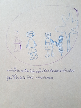 "รู้สึกดีใจที่ได้ออกไปตัดกล้วยและรดน้ำกล้วย เพราะกล้วยเป็นอาหารที่มีประโยชน์"