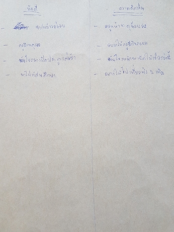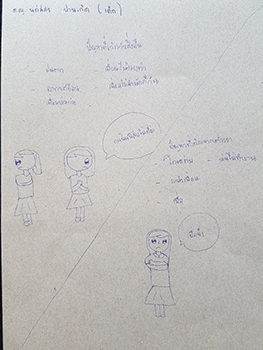 "ปัญหาจากสิ่งอื่น :- ฝนตก อากาศร้อน เพื่อนเล่นกัน ไม่ช่วยทำงาน ไม่สามัคคีกัน / ปัญหาจากตัวเรา :- โกรธง่าย แกล้งเพื่อน เบื่อ เล่น ไม่ทำงาน"