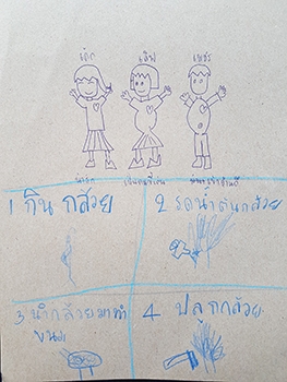 "กินกล้วย รดน้ำต้นกล้วย นำกล้วยมาทำขนม ปลูกกล้วย"