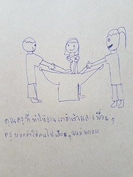 "ชื่นชม :- คุณครูที่แนะนำวิธีทำ และเพื่อนๆ ที่ช่วยกันทำงาน / ข้อควรปรับ :- ครูไม่ดุ เพื่อนๆ ไม่คุย"