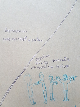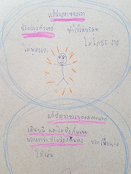 "ปัญหาจากตัวเรา :- ชอบโกรธ ชอบกวน ชอบตะโกน ชอบหัวเราะ / ปัญหาจากภายนอก :- เพื่อนชอบกวนคนอื่นๆ"