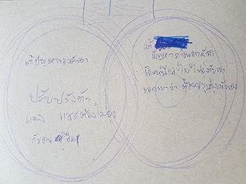 "ปัญหาจากตัวเรา :- ชอบกวนคนอื่น ชอบหัวเราะ ชอบเล่นเกม / ปัญหาจากภายนอก :- ชอบกวนคนอื่นไปทั่ว หัวร้อน ชอบเล่นเกมเสียงดัง"