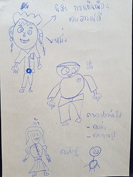 "หมั่ง อารมณ์ดี / โอ๊ค ชอบเล่นและวาดรูป / ต้า"