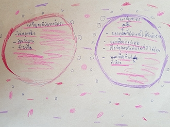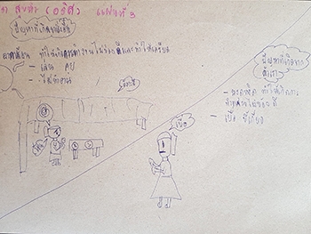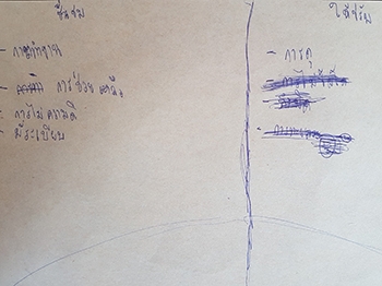 "ปัญหาจากสิ่งอื่น :- อากาศร้อน ทำให้การทำงานไม่ค่อยดีและเครียด เล่น คุย ไม่ทำงาน / ปัญหาจากตัวเรา :- หงุดหงิด ทำให้การทำงานไม่ค่อยดี เบื่อ ขี้เกียจ"