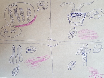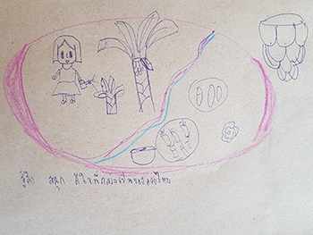 "รู้สึกสนุกตอนได้ทำสลัดโรลกล้วย รู้สึกดีใจที่ได้ทำกล้วยปิ้ง รู้สึกภูมิใจที่ได้ทำขนมกล้วย และรู้สึกเหนื่อยตอนปลูกกล้วย"
