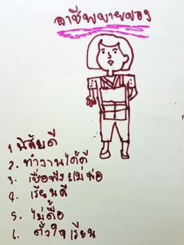 "อาชีพขายของ นิสัยดี ทำงานได้ดี เชื่อฟังพ่อ-แม่ เรียนดี ไม่ดื้อ ตั้งใจเรียน"
