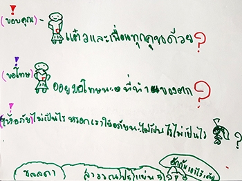 "ขอบคุณ :- แต๋วและเพื่อนๆ ทุกคน / ขอโทษ :- ออย ขอโทษที่ทำของตก"