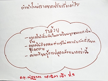 "อยากให้เพิ่มวันในการเรียนบูรณาการเพิ่มขึ้น อยากให้กิจกรรมต่างๆ ไม่ตรงกับวันที่เรียนบูรณาการ อยากเรียนรู้การปลูกกล้วยมากกว่านี้"