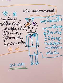 "พยาบาลทหารอากาศ ในการที่เราจะได้ทำอาชีพนี้ เราต้องมุ่งมั่น ตั้งใจ และเรียนรู้เกี่ยวกับอาชีพที่เราอยากจะเป็น เหตุที่อยากเป็นเพราะจะได้ดูแลผู้ป่วยหรือผู้ที่มีสุขภาพไม่ค่อยแข็งแรงที่อยู่บนเครื่องบิน"