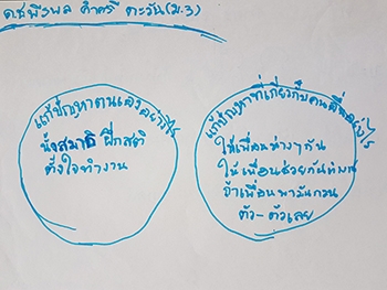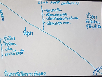 "ปัญหาจากตัวเรา :- ขี้เกียจ ใจร้อน เบื่อ อารมณ์ไม่ดี / ปัญหาจากผู้อื่น :- ทะเลาะกัน เพื่อนชอบคุย ไม่ช่วยกันทำงาน ชอบกวน"