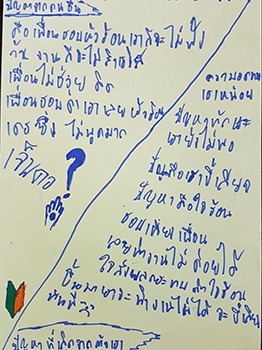 "อยากจะปรับพฤติกรรมเพื่อนและตัวเอง ถ้าทำใหม่จะไม่ทำให้เพื่อนต้องหัวร้อนและด่าว่าเรา เพื่อที่งานของเราจะได้เสร็จ"