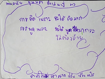 "การคิด เพราะจะได้ฝึกการคิดมากขึ้น การพูดเพราะจะได้ฝึกการพูดกล้าแสดงออก"